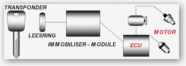 ingebouwd. De transpondersleutel (sleutel met transponder-chip) wordt